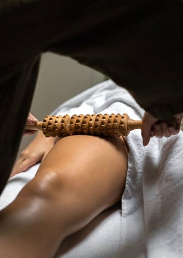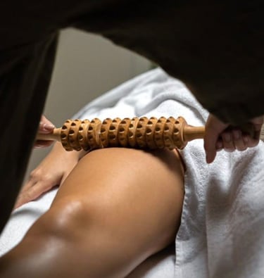 Technique de massage utilisant des instruments en bois spécialement conçus pour stimuler la circulation sanguine et lymphatique, mobiliser les tissus et favoriser le remodelage de la silhouette. Les mouvements mécaniques exercés sur la peau aident à activer le métabolisme local et à améliorer la qualité des tissus.